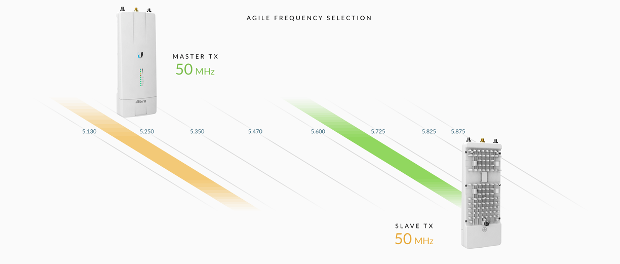 airFiber AF-3X, ülkemizde kamu kurumlarına özel olarak tahsis edilmiş 3GHz spektrumunu kapsar ve DFS desteği ile birlikte  10/20/30/40/50 MHz kanal genişliklerinde kullanılabilmektedir. AF-5X, en yüksek  TDD  verimliliğini sağlamak için özel olarak geliştirilmiş  Hybrid Division Duplexing (HDD) teknolojisini kullanmaktadır, bu teknoloji sayesinde kablosuz haberleşme sırasında cihazlar arası yayılma gecikmesi hesaplanarak paket iletim gecikme problemleri ortadan kaldırılmaktadır.