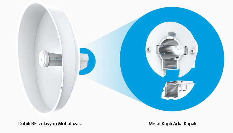 AirMAX AC teknolojisi kullanılarak oluşturulmak istenen kablosuz iletişim altyapılarında en iyi performans ve RF izolasyonu konusunda kayda değer çözümler elde etmek için tasarlanan UBNT ISOBeam AC serisi ürünler, üretilen RF sinyalini belirli bir odakta sıkıştırarak kablosuz bağlantınızın performansını en üst düzeyde tutarken, altyapı kurulumu yaptığınız bölgedeki diğer RF sinyallerinin oluşturduğu kirlilikten dahili RF Muhafazası sayesinde en az seviyede etkilenmektedir. Tescilli UBNT InnerFeed™ teknolojisi, PowerBeam AC ISO ürün ailesinde Anten ile Radyo kart arasında bağlantı kablolarını ortadan kaldırarak, geleneksel bağlantı tiplerinde yaşanan performans kaybını ortadan kaldırmaktadır. noktadan noktaya 20+KM uzaklığa kadar olan bağlantılarda kullanabileceğiniz PowerBeam AC 400-ISO, RF İzolasyon muhafazası ile birlikte sunulan radom sayesinde sert iklim koşullarına dayanıklı hale getirilmiştir. Yenilikçi mekanik montaj tasarımı ile kurulum ve kurulum sonrası ayar/bakım işlemleri hızlıca halledilebilmektedir.