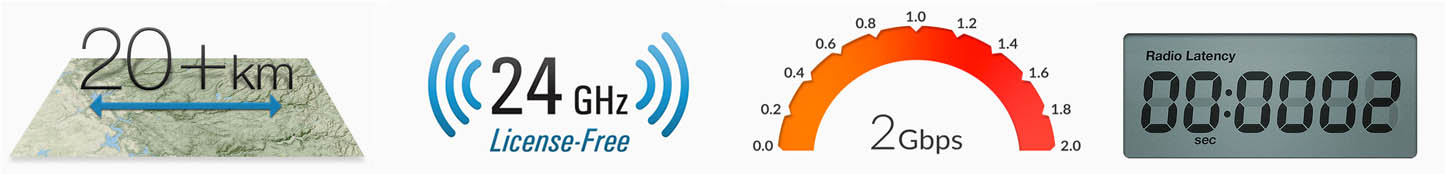 AirFiber 24HD Devrimsel INVICTUS işlemcisi ve 24GHz lisans gerektirmeyen(Freeband) teknolojisi ile 20KM+ Uzaklığa kadar 2GBPS TCP bant genişliği sağlamaktadır.