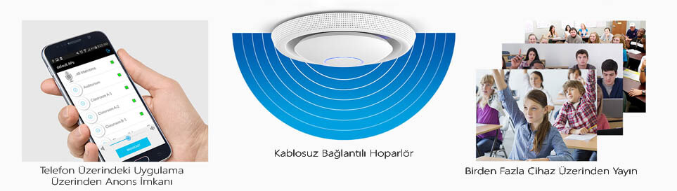 UniFi UAP AC EDU ile birlikte sunulan Anons Hoparlörünün kulurumunu ilave data veya Güç kablolaması yapmadan gerçekleştirebilir, cihazınıza çekilen PoE kablosu üzerinden cihazınızın ve kablosuz Erişim noktalarınızın yönetimini ve güç ihtiyacını karşılayabilirsiniz. Yapılacak anonsunuzu Android veya IOS platformuna sahip akıllı telefonunuz üzerinden yapabilir, dilerseniz tek bir UBNT UniFi UAP AC-EDU veya birden fazla kablosuz erişim noktanız üzerinden anons işlemini gerçekleştirebilirsiniz.