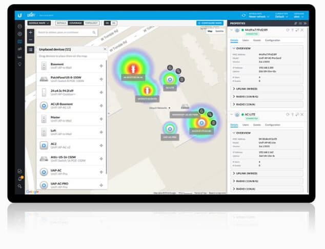 UBNT UniFI Kontrol yazılımı ile , yerel ağınızda bulunan tüm cihazlarınızı tek bir ekranda yönetebilmenizin yanısıra dünyanın herhangi bir yerindeki cihazlarınızı da merkezinize bağlayıp yönetebilirsiniz, yönettiğiniz cihazları bulundukları konuma veya hizmet şekline göre gruplandırabilir, Ölçeklendirilebilir harita ve Google Maps entegrasyonu sayesinde gerçek zamanlı kapsama alanı haritanızı çıkarabilir, cihazlarınızın Grup olarak veya ayrı ayrı olacak şekilde hizmet istatistiklerini takip edebilir, cihazlarınız üzerindeki kullanıcıları yönetebilir veya gruplandırabilirsiniz. UniFI ailesi 4 adet Sanal yayın (Virtual SSID) oluşturma imkanı sunmaktadır. oluşturulan bu yayınlardaki VLAN desteği sayesinde tek bir cihaz üzerinden 4 farklı ağ yayını yapılabilir veya güvenlik duvarı, VLAN gibi yapılandırmalar ile uğraşmadan oluşturulan sanal kablosuz yayınları misafir ağı olarak ayarlayabilirsiniz, oluşturulan misafir ağının mevcut yerel ağınıza ve aynı misafir ağını kullanan diğer cihazların arasındaki erişimi kısıtlayabilir ve bant genişliği sınırlaması uygulayabilirsiniz. yazılım içerisinde ücretsiz olarak sunulan Captive portal yazılımı ile Paypal ödeme altyapısını kullanarak sunduğunuz kablosuz internet hizmetini ücretlendirebilirsiniz.