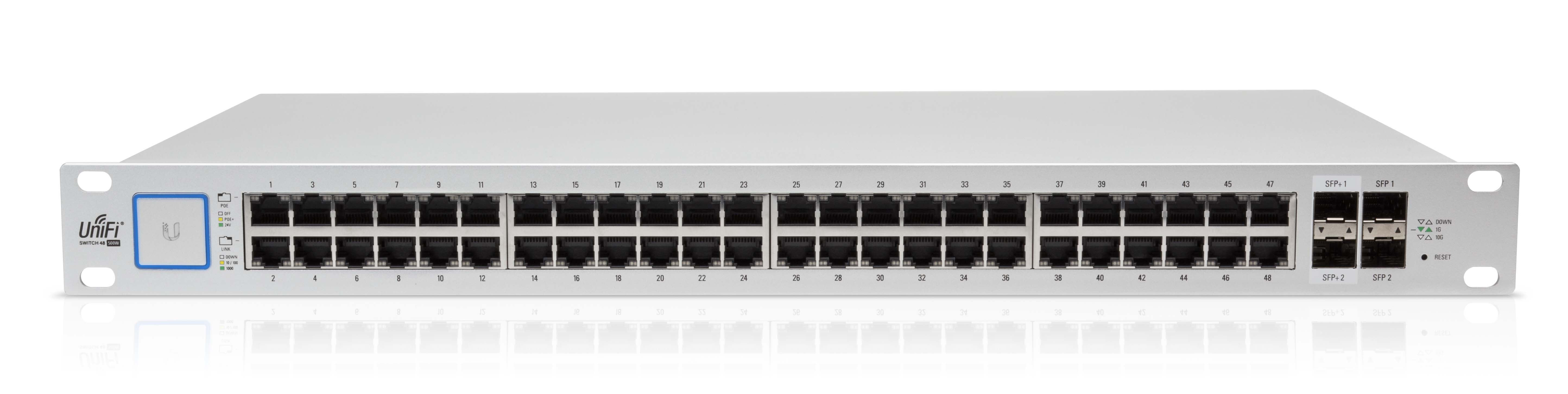 UBNT UniFi ürün ailesinin bir parçası olarak tasarlanmış UBNT UniFi Switch'ler, kurumsal yönetilebilir switch teknolojilierini sezgisel kullanım anlayışı ön planda tutlarak geliştirilen UBNT UniFi Controler yazılımı ile birleştirerek, çoklu cihaz yönetimi ve takibini tüm detayları ile tek bir ortak noktadan kontrol etme imkanı sağlamaktadır. UBNT UniFi Switchürün grubunun, geniş çaplı kurumsal ağ ihtiyaçlarını karşılamak için tasarlanmış UBNT UniFi Switch US-48-750 modeli, Layer -2 ve Layer -3 standartlarını destekleyen gerçek yönetilebilir switch özelliklerinin yanısıra 802,3 af/at ve 24V Pasif PoE standartlarında 48 adet Gigabit ethernet portu, ve 2 adet SFP, 2 adet SFP+ portu ile gelmektedir.